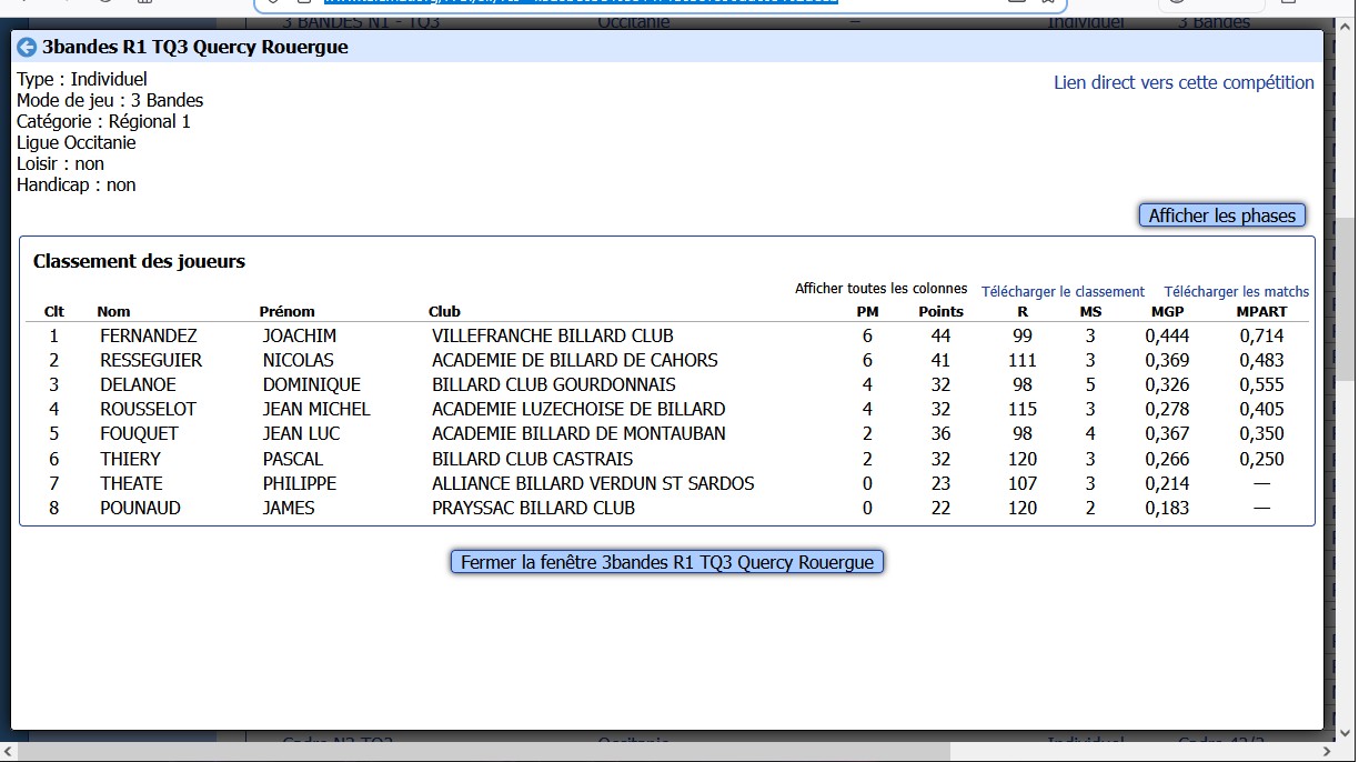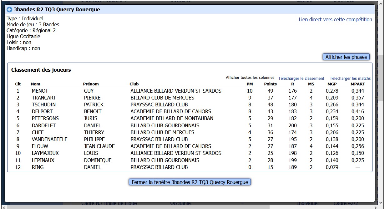 LISTE DES COMPETITIONS A VENIR