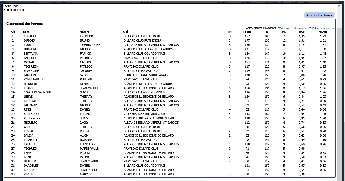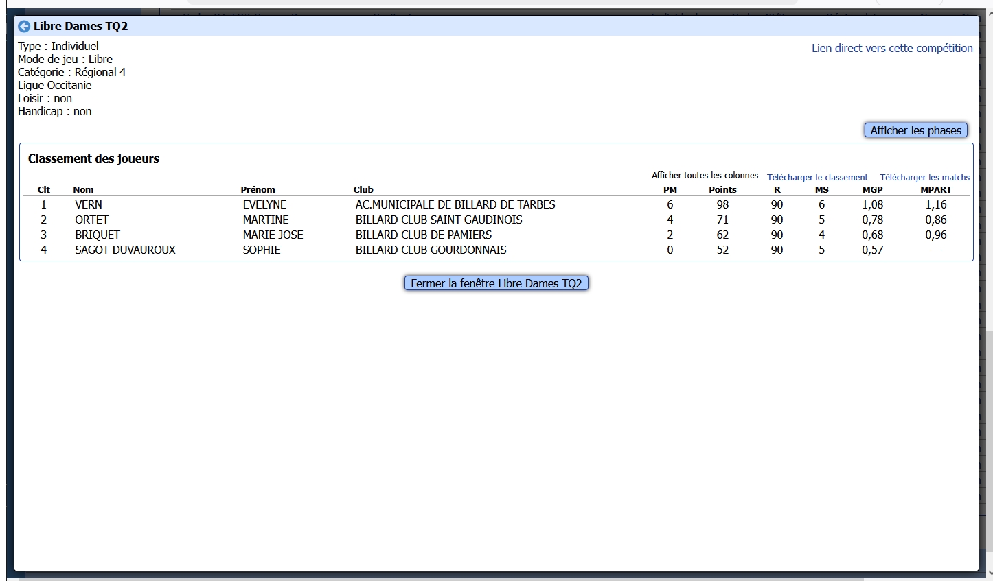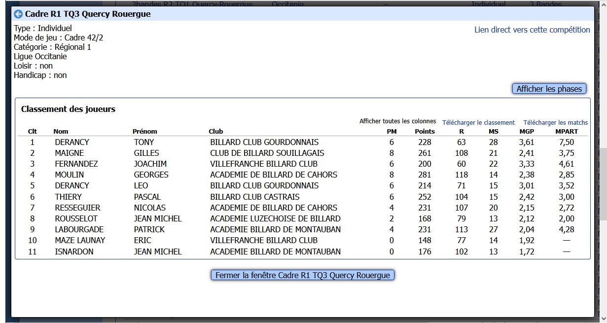 LISTE DES COMPETITIONS A VENIR